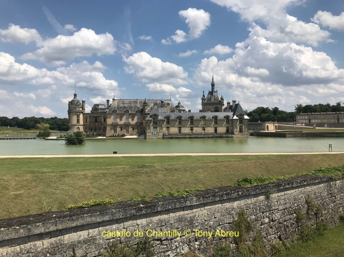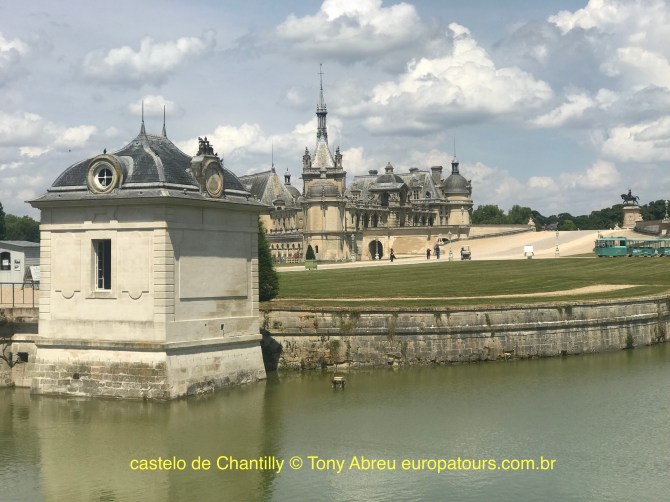 Um belo castelo estilo renascentista de quinhentos anos ,num lindo parque com jardins a francesa e estilo ingles , no norte de Paris a 40kms , ficou bem famoso no Brasil depois da festa de casamento do Ronaldo fenomeno , tem também cocheiras espetaculares que podem ser visitadas e apresentam espetaculos equestres . Situado na cidade do mesmo nome tem uma enorme floresta em volta pois fica dentro de uma reserva natural tem também um hipódromo onde se realiza o Grand Prix de Chantilly uma vez por ano . Podemos levar vcs em minivan com motorista guia falando portugues ,diretamente do seu endereço ou hotel em Paris até este lugar maravilhoso , o tour dura cinco horas , se quiser reservar ou mais detalhes entre em contato pelo formulario abaixo , para maiores informações e orçamento sem compromissos , se preferir passe e mail tonyparis2008@gmail ou pode acrescentar nos no whattsapps +33 7 89 70 33 77