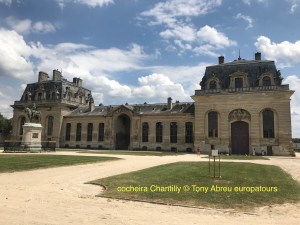 Um belo castelo estilo renascentista de quinhentos anos ,num lindo parque com jardins a francesa e estilo ingles , no norte de Paris a 40kms , ficou bem famoso no Brasil depois da festa de casamento do Ronaldo fenomeno , tem também cocheiras espetaculares que podem ser visitadas e apresentam espetaculos equestres . Situado na cidade do mesmo nome tem uma enorme floresta em volta pois fica dentro de uma reserva natural tem também um hipódromo onde se realiza o Grand Prix de Chantilly uma vez por ano . Podemos levar vcs em minivan com motorista guia falando portugues ,diretamente do seu endereço ou hotel em Paris até este lugar maravilhoso , o tour dura cinco horas , se quiser reservar ou mais detalhes entre em contato pelo formulario abaixo , para maiores informações e orçamento sem compromissos , se preferir passe e mail tonyparis2008@gmail ou pode acrescentar nos no whattsapps +33 7 89 70 33 77