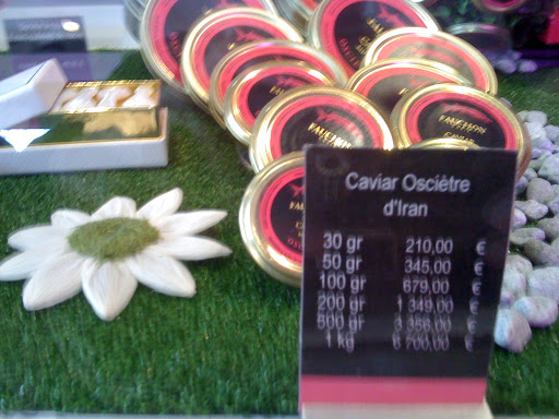 Esta loja vc num pode perder é de dar agua na boca tem as melhores comidas do mundo por ex caviar do Iran Beluga 11170 euros o kg clique na foto pra ampliar e ver , doces e bebidas e comidas pra comer no restaurante deles ou pra levar pra casa. As fotos são da loja e restaurante matriz que fica na atras da igreja da Madeleine, existem outras lojas e pontos de venda Fauchon em Paris.