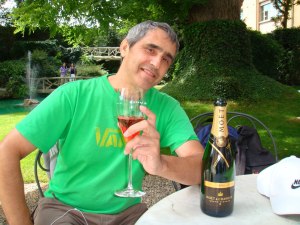 Saimos de Paris as 9:00hs em direção ao Leste pela autoestrada A4 depois de 100kms entramos em estradas secundarias que passam ao longo do rio Marne,vilarejos,vinhedos,bosques,uma paisagem rural muito pitoresca mais 30kms e chegamos a Epernay cidade de 30.000 habitantes onde fica a cave da Moet Chandon a mais famosa champagne do mundo. Vcs tem a possibilidade de escolher entre 3 tipos de degustações essa que eu estou tomando na foto é a vintage uma champagne feita de uvas da mesma safra é a melhor uma delicia!!! Vcs descem a mais 30mts de profundidade tem mais de 30kms de corredores a cave enorme mais de 100 milhões de garrafas estocadas inclusive a legendaria Dom Perignon uma das marcas da casa Chandon e tem explicações detalhadas desde o plantio da uva ,colheita,seleção,mistura,fermentação,engarrafamento tudo vcs saem experts em champagne e tem a loja com todos tipos de garrafas da Chandon. Depois vamos almoçar no restaurante Le Théatre uma otima comida francesa e com uma grande variedade de champagnes no seu menu de boissons ,seguimos viagem a cidade de Reims 300.000 habitantes a capital da região Champagne onde visitaremos a catedral gotica do seculo XII onde eram sagrados os reis França , apos voltamos a Paris e chegamos ao hotel as 17:30hs quem leva é a www.europatours.com.br